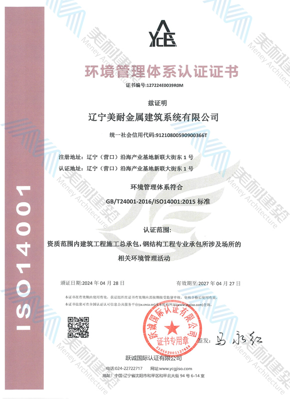 遼寧美耐金屬建筑系統有限公司位于遼寧(營口)沿海產業(yè)基地,專注于預制金屬建筑系統領域,是一家集工業(yè)建筑設計、制作、施工及相關的技術咨詢與服務為一體的綜合性服務企業(yè)。作為國家鋼結構協會會員、中國建筑金屬結構協會會員單位與國家高新技術企業(yè),美耐建筑集建筑工程施工總承包、鋼結構工程專業(yè)承包等多種資質于一身,并擁有22項鋼結構建筑領域專利,9項軟件著作權。